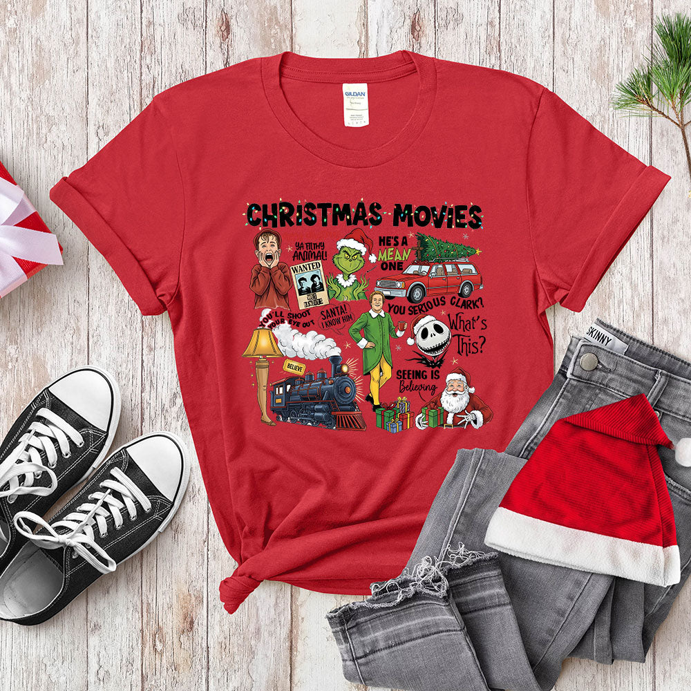 This exclusive design from Cusluckgift is a nostalgic collection of the most beloved holiday films, featuring funny images and popular quote paraphrases about leg lamps, famous train rides, home antics, and anti-holiday characters. It’s the perfect, witty way to show off your deep knowledge of festive classics without naming names! This shirt is a fun, "if you know, you know" piece for all movie lovers.