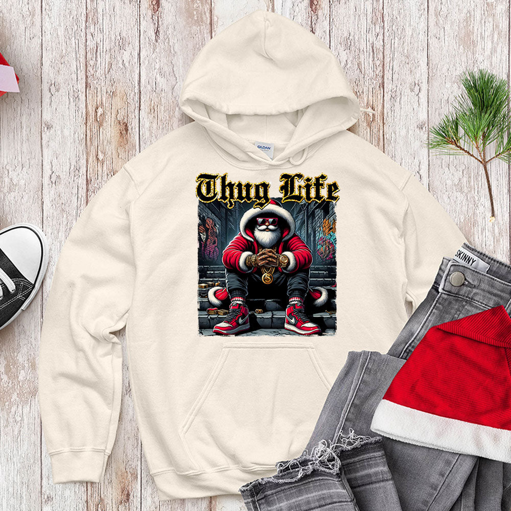 Move over, milk and cookies! This season, Santa is delivering gifts with serious street style. Our "Thug Life" Hip-Hop Santa T-Shirt, Sweatshirt, and Hoodie is the coolest festive apparel you'll find!